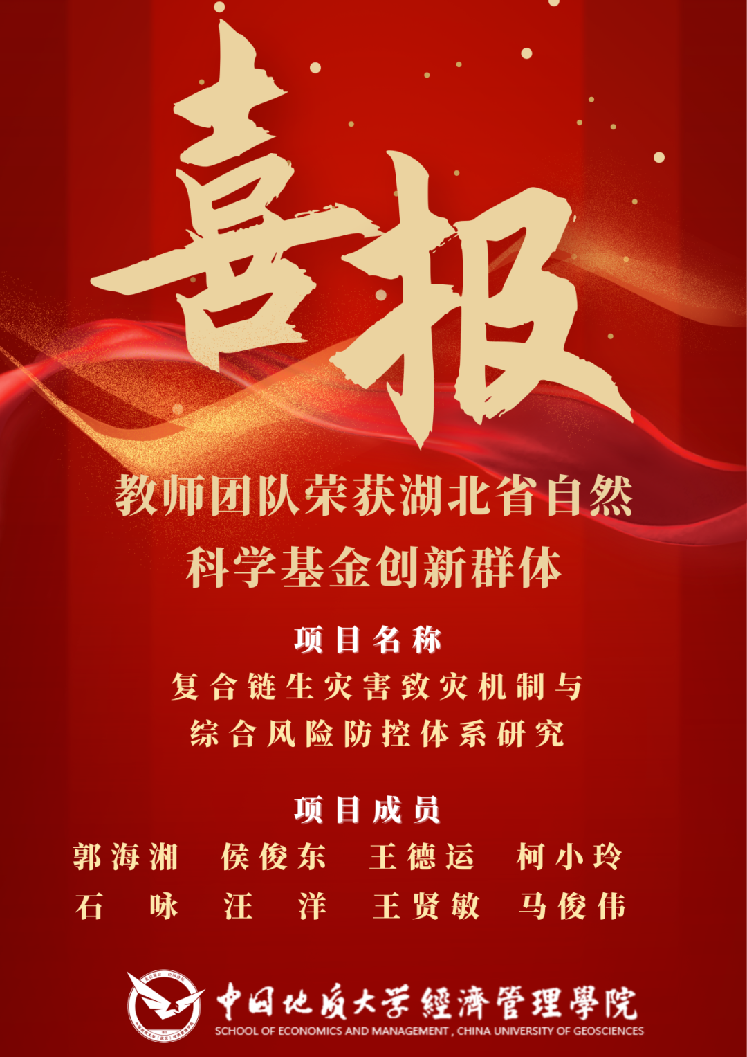 近日,湖北省自然科学基金获批名单公布,以taptap点点郭海湘教授、侯俊东教授、王德运副教授、柯小玲副教授、石咏特任教授为核心的科研团队,协同工程学院汪洋教授、地球物理与空间信息学院王贤敏教授、湖北巴东地质灾害国家野外科学观测研究站马俊伟副研究员,共同申请的“复合链生灾害致灾机制与综合风险防控体系研究”,荣获湖北省自然科学基金创新群体项目支持,该群体项目是学校培育支持的复合链生灾害风险决策与应急管理交叉团队的重要成果,也是近年来学院获得的首个交叉学科湖北省自然科学基金创新群体项目。