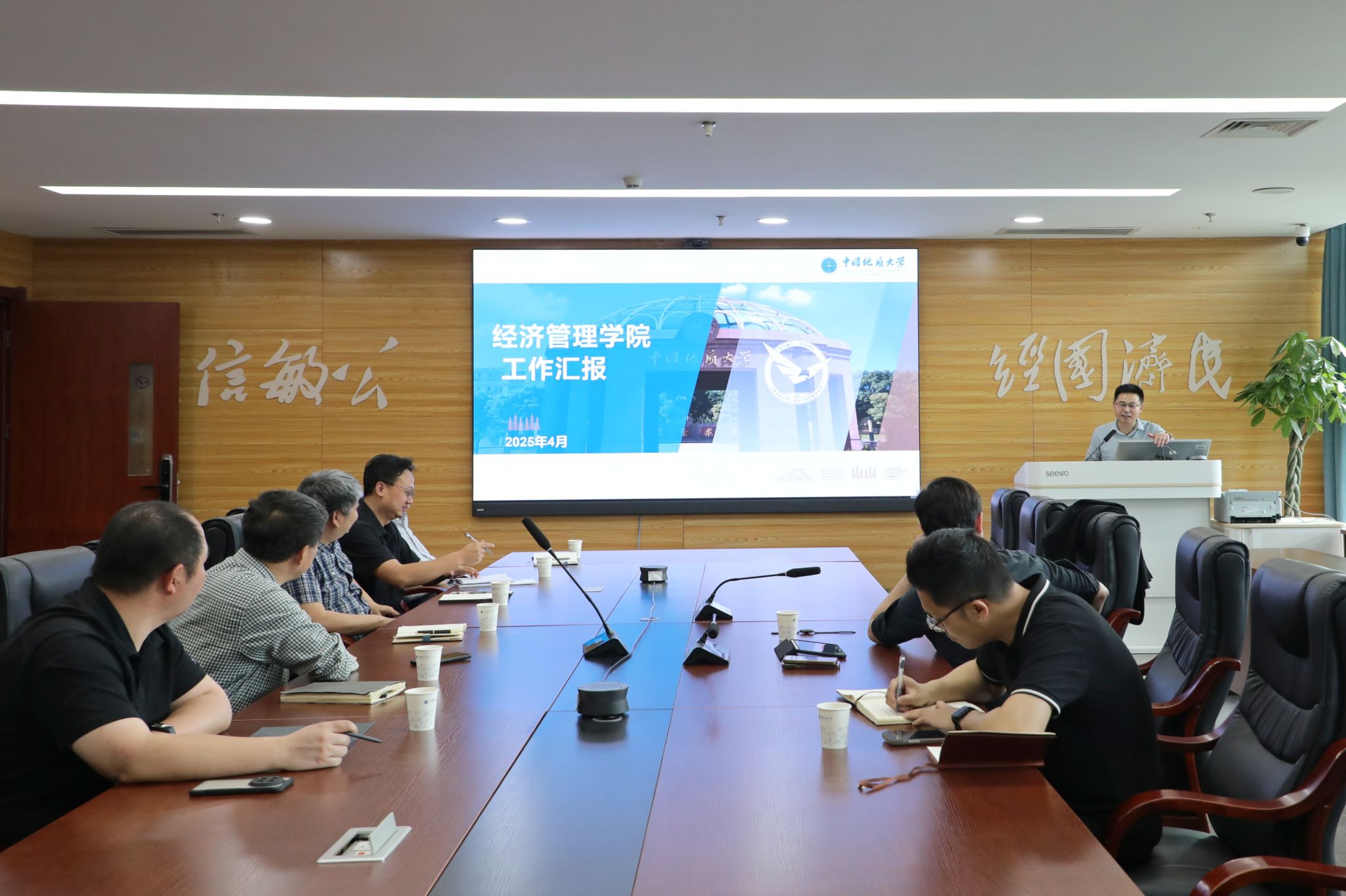 会上,於世为院长从学院基本情况、总体工作思路、2024年成果和2025年要点四个方面进行了汇报。与会院领导表示,学院始终坚持以人才培养为中心,积极推进学科建设与教学改革,努力提升科研水平和社会服务能力,在各方面都取得了成果,但在发展过程中也面临着一些困难和问题,希望能够得到学校的支持与指导。听取汇报后,夏帆副校长与学院领导班子成员进行了深入融洽的交流,针对所汇报的问题提出了具体的解决措施和建议。