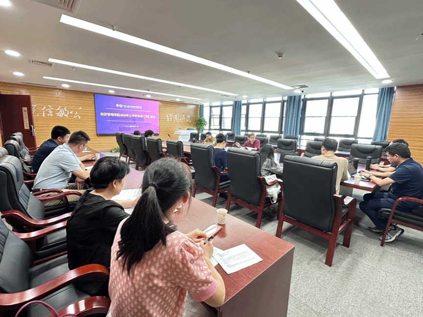 7 月 1 日,学院 2025 年上半年各系工作情况汇报会顺利召开。管理科学与工程系、经济学系、大数据科学与应用统计系、会计系、金融与贸易系、工商管理系、旅游管理系等七系围绕 2025 年目标责任管理责任书完成情况进行详细汇报。学院党委书记杨昌锐、副院长程胜、王广民、各系支部书记参会,院长於世为主持会议。