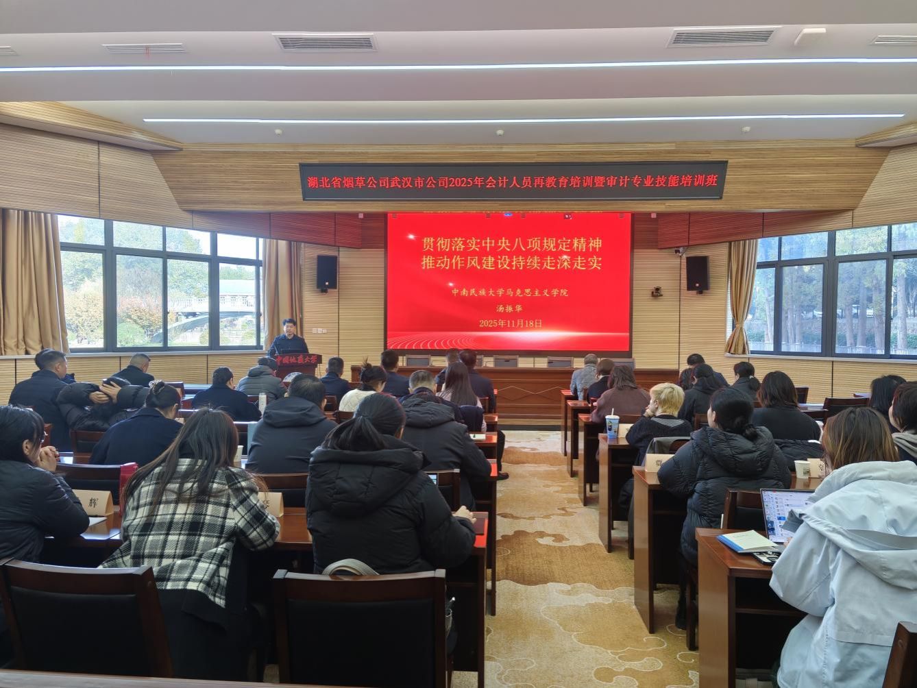 (通讯员:陈永平)2025年11月18日上午,湖北省烟草公司武汉市公司2025年会计人员再教育培训暨审计专业技能培训班开班仪式在taptap点点(武汉)八角楼报告厅隆重举行。湖北省烟草公司武汉市公司党委委员、副经理、副局长陈劲,财务处长李华华,审计处处长邓斌;taptap点点(武汉)taptap点点官方网站党委书记薛保山,院长於世为等出席,湖北省烟草公司武汉市公司财务处长李华华主持本次开班仪式。