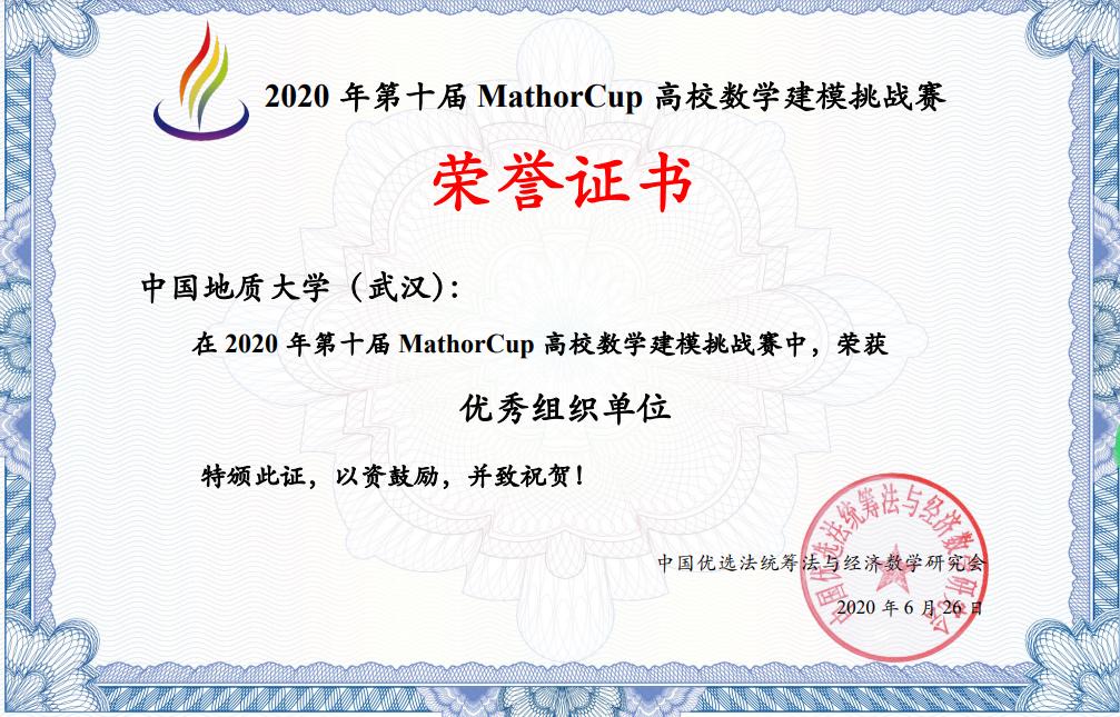 在第十三届华中杯数学建模挑战赛中,来自全国130所高校的1123支队伍参赛,信管专业大二学生郭志刚获一等奖、袁亮获得二等奖。翁克瑞老师被评为“优秀指导老师”称号。