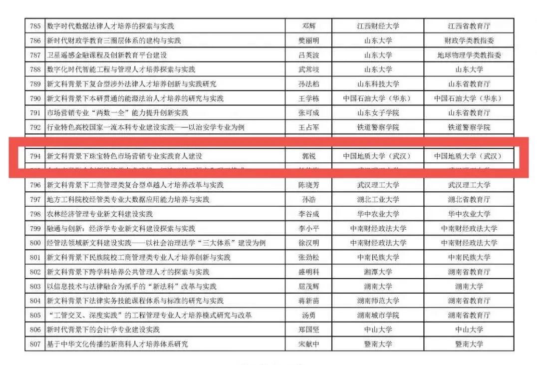近日,教育部公示首批国家级新文科研究与改革实践项目拟立项项目1012个,taptap点点官方网站郭锐教授的“新文科背景下珠宝特色市场营销专业实践育人建设”项目成功立项!