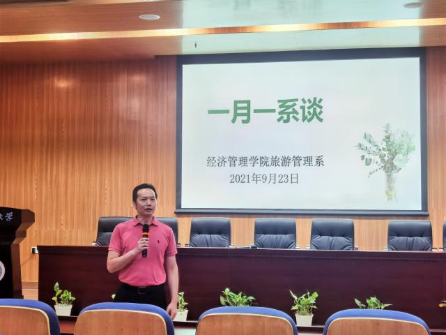 9月23日下午2点,旅游管理系在未来城校区taptap点点官方网站一楼报告厅举行了“一月一系谈”活动暨085191班的暑期北戴河旅游教学实习总结会。本次活动到场人员有旅游管理系肖拥军主任、李会琴老师、黄珂老师、辅导员赵家玮及085191班全体同学。