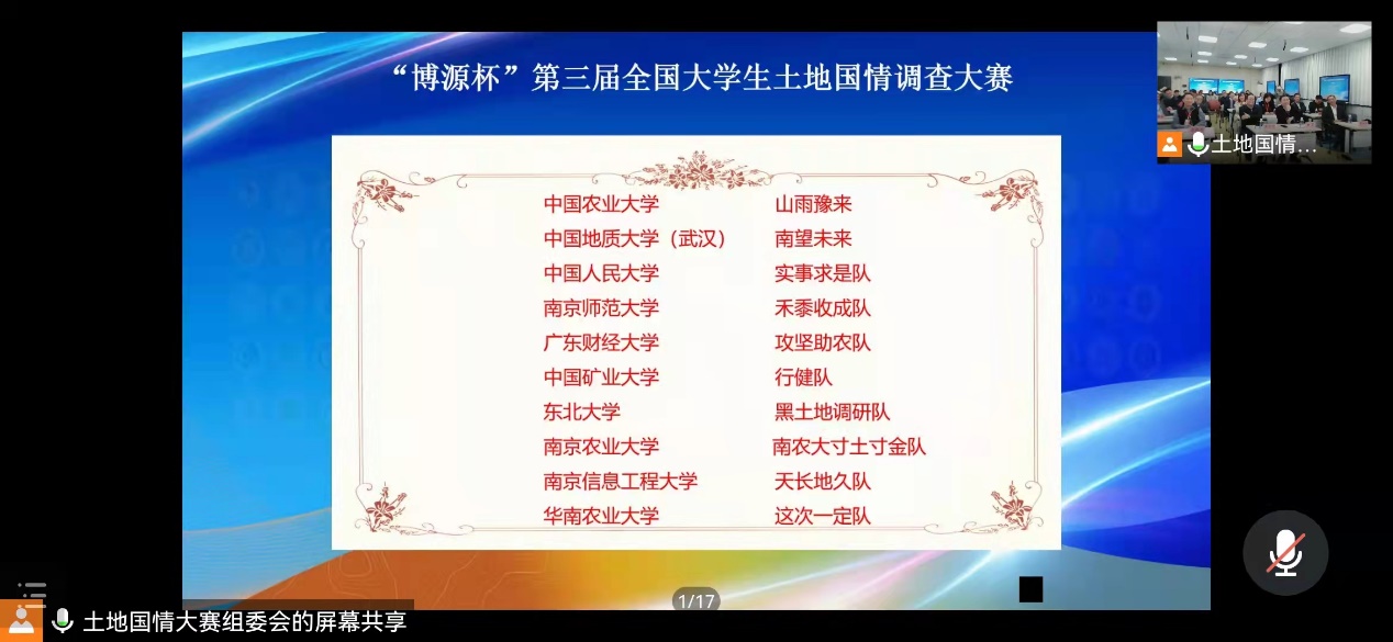 图1第三届全国大学生土地国情调查大赛线上闭幕仪式