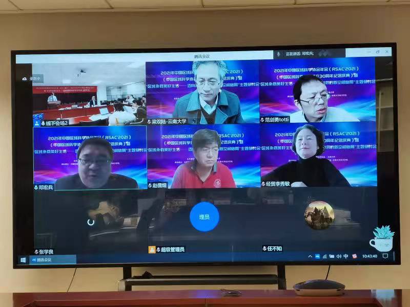 (通讯员 郑坤)2021年12月24-26日,由中国区域科学协会、云南大学主办,中国区域科学协会空间经济学专业委员会、云南大学经济学院、北京大学首都发展研究院承办的2021年中国区域科学协会年会暨“区域承载美好生活——迈向高质量发展的新空间格局”主题研讨会在云南大学召开(线上)。共计1200余人次参加了此次会议。我校区域经济团队邓宏兵、白永亮教授、易明教授、胡守庚教授、洪水峰副教授等30余名师生参加了本次会议。邓宏兵教授参加了“区域承载美好生活”高端对话,他围绕共同富裕,从疫情防控与高质量发展两个维度阐述了区域发展中如何实现美好生活的愿景,并希望未来区域科学的相关专家学者能够共同助力推动区域高质量发展,实现人民对美好生活的向往。邓宏兵教授作为点评人参加并点评了分论坛二“低碳背景下区域创新发展模式”相关报告,博士生郑坤等同学在分论坛上做了发言。