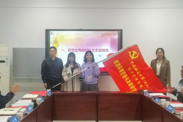 会上,李少杰宣读学院党委《关于成立能源环境管理与决策研究生党支部、生态文明研究生党支部的通知》文件,王甫、何建新对新成立支部进行授旗。能源环境管理与决策研究生党支部书记方旭、生态文明研究生党支部书记周之逸汇报支部基本情况。两个支部对标研究生样板党支部标准,分析差距、查找不足,进一步明确了支部“党研互融互促、成果集成转化、德智双向开花”的建设思路。