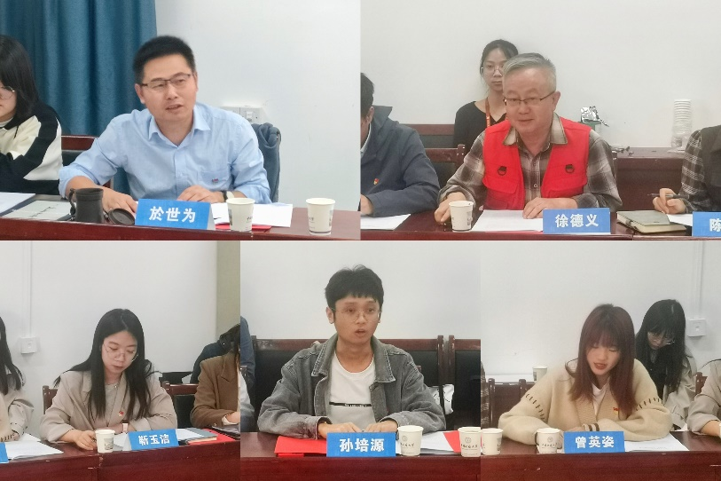 与会师生聚焦党的二十大报告中“实施科教兴国战略,强化现代化建设人才支撑”“推动绿色发展,促进人与自然和谐共生”“坚定不移全面从严治党,深入推进新时代党的建设伟大工程”三个部分进行了交流讨论。徐德义表示,自己将带领研究生团队认真学习贯彻党的二十大精神,切实把党的二十大精神融入研究生导论课程教学和生态文明研究的实际行动,为全面建设社会主义现代化国家积极贡献力量。於世为指出,党的二十大报告对学院发挥专业特色优势,推动“双碳”行动和能源环境管理等方面具有重要的指导意义,导师和研究生是高校科研工作的主力军,要坚守科技报国的初心使命,坚持科技创新,服务国家战略。研究生党员代表靳玉洁、孙培源、曾英姿等表示,要积极学习贯彻党的二十大精神,牢记习近平总书记对新时代青年的殷殷嘱托,立志做有理想、敢担当、能吃苦、肯奋斗的新时代好青年,让青春在全面建设社会主义现代化国家的火热实践中绽放绚丽之花。