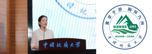 旅游管理系主任李会琴老师发布旅游管理系LOGO并宣布比赛开始。旅游管理系LOGO为圆章式设计,构图简洁,内蘊寓意丰富。LOGO以蓝色和绿色为主题色,正上方放置“寓学于游,胸怀九州”,为旅游管理系理念口号,正下方放置学校校名,中心放置山、水元素图案,寓意旅游与山水文化、“绿水青山就是金山银山”、地学旅游景观等,外圈为象征蓝色地球和呼应taptap点点校徽的“地大蓝”,并置入了旅游管理系成立于1993年、位置在武汉等方面的信息。她指出,旅游管理系LOGO的设计和创意,是旅游管理建系30年来教学育人的实践结晶,其发布和正式启用必将在增强专业凝聚力,加强专业文化建设,促进旅游管理专业办学理念及育人特色传播方面发挥积极作用。