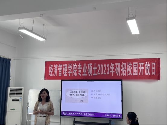 会计系杨洁老师介绍了会计专硕学位点发展概况、专业导师风采、承担省部级科研项目、社会服务、与专业学科竞赛情况,同时就同学们最关心的毕业就业途径进行了详细介绍,最后向各位同学表达了欢迎推免到我校的美好期望。