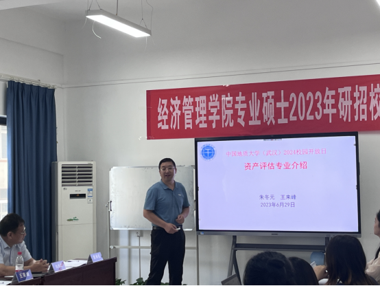 在专业介绍及优势特色宣传环节,经济系王来峰老师详细介绍了资产评估专业的发展历程与我校资产评估专业学位点的发展情况、师资队伍、科研竞赛、在校生与毕业生情况,他指出我校资产评估特色专业方向有:矿业权评估、珠宝价值评估、土地价值评估。