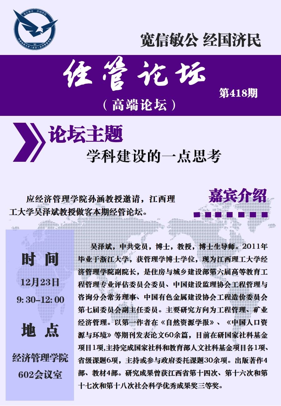 经管论坛(第418期)【高端论坛】学科建设的一点思考