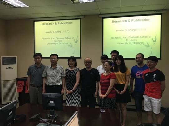 2016年7月6日,美国匹兹堡大学教授Jeniffer Shang应taptap点点严良院长和郭海湘教授邀请,于下午3时在MBA104与taptap点点官方网站各位师生进行学术交流,作了题为Reaearch&Publication的精彩报告并以问答的形式与各位师生进行了更进一步的讨论。严良院长,王开明副院长等出席会议。
