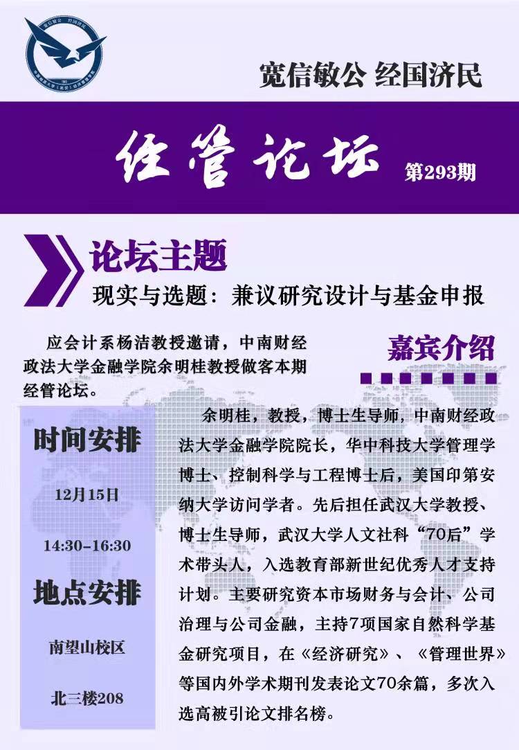 经管论坛(第293期)现实与选题:兼议研究设计与基金申报
