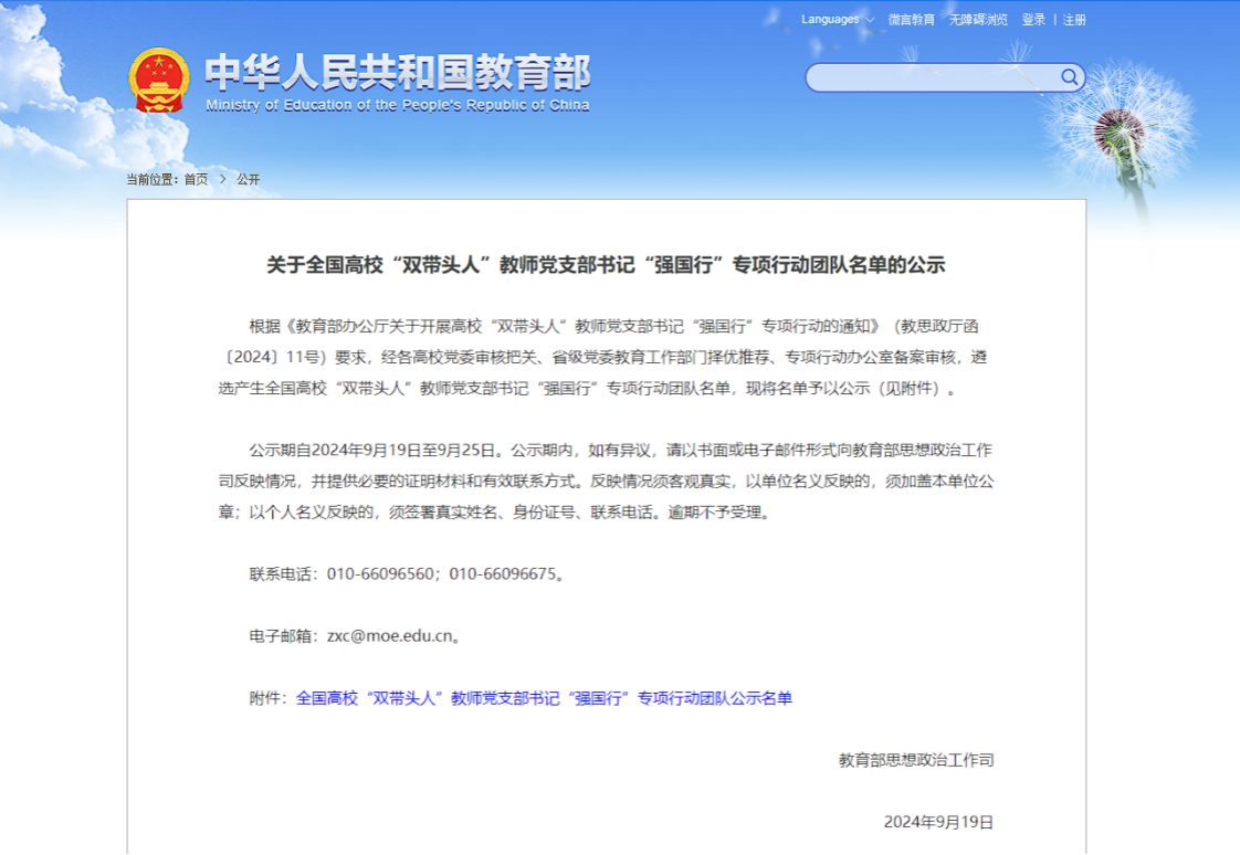 日前,教育部办公厅公布《关于全国高校“双带头人”教师党支部书记“强国行”专项行动团队名单的公示》,taptap点点旅游管理系党支部书记李江敏作为团队负责人入选。