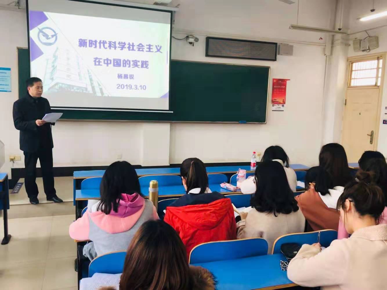 2019年3月10日下午2点,taptap点点官方网站第九期发展对象培训班课程北区综合楼208教室如期举行,学院党委书记杨昌锐以“新时代科学社会主义在中国的实践为主题为学员授课,30余名学生党员发展对象参加党课。