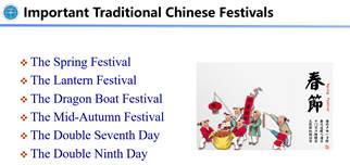 任课教师梁玥琳老师向同学们讲授了传统文化理念和中国年俗的知识要点。梁老师认为,专业课教学过程中,应该重视学生中国传统文化素养与独立文化人格的培养,在教学过程中适当融入跨文化交流的元素,有利于学生真正成长为中国传统文化的代言人。