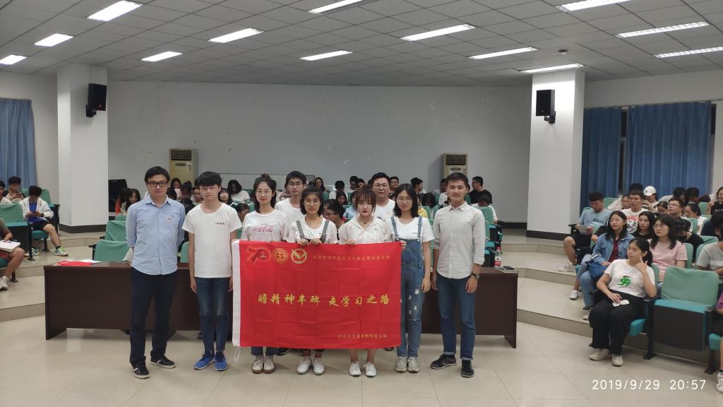 发挥朋辈育人功效,聚焦“继承革命光荣传统,走好新时代长征路”开展专题学习。2019年暑期,我支部学生党员在学校学习之路主题教育方案的统领下,积极参与学院“瞻精神丰碑、走学习之路”学习之路主题暑期社会实践,支部牵头组织党员奔赴西柏坡,踏寻党的革命之路。本次活动充分运用主题社会实践丰厚理论和实践成果,邀请本支部实践团代表牛金叶同志和湖北省“青马工程”培训班六期学员吴定斌同志围绕“初心使命”,以实践亲历者之学思践悟,以服务基层青年学子之勇担使命,为在场的同志上了一堂深刻的党史理论课和“铸魂补钙”课。