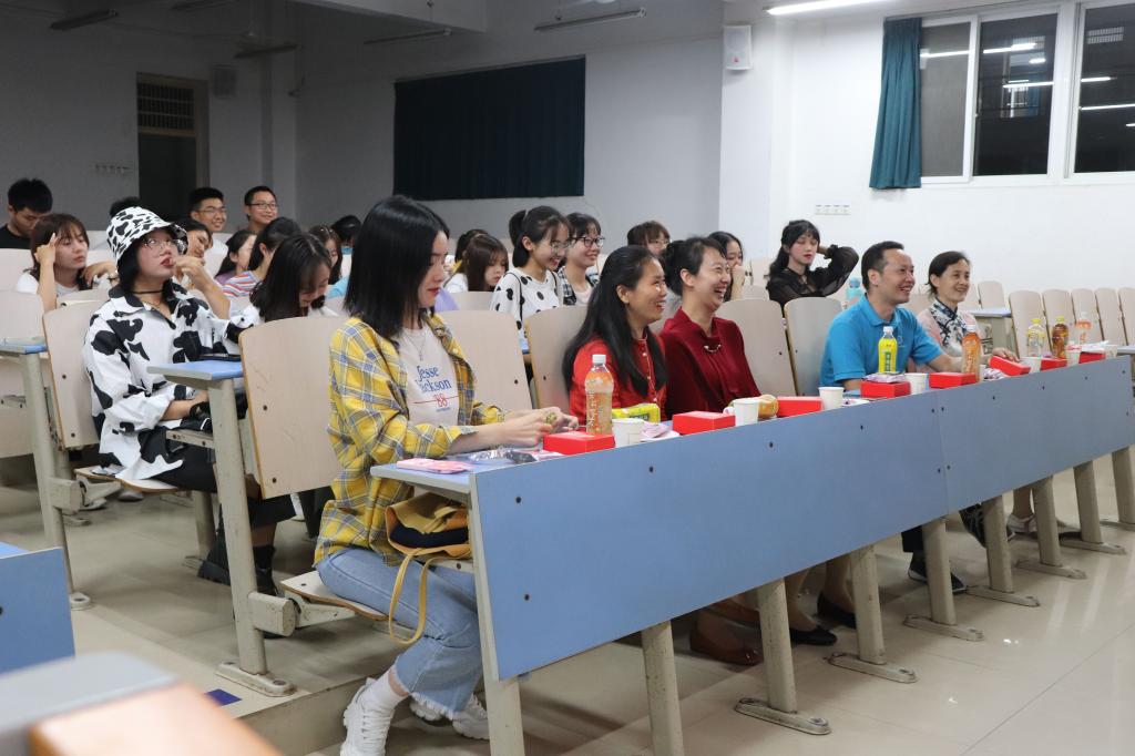 2020年9月30日晚,南望山校区北综101教室,taptap点点官方网站新生08S207班“南望月解影,鹰扬识相知”主题中秋班庆活动临近开始,旅游管理系党支部书记李江敏老师、支部党员和旅游管理系系主任肖拥军老师、支委委员梁玥琳老师和周玲老师来到会场,与班级共同开展国庆和中秋双节庆祝活动。08S207班由来自旅游管理系的三名党员教师担任班主任和学务指导,是旅游管理系党支部“结对领航”的新生班级。此次活动为支部与该新生班级首次开展师生“结对领航”活动。