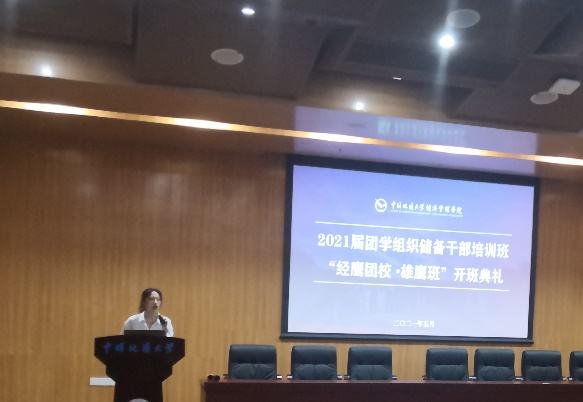2021年5月22日下午14:00,taptap点点官方网站2021届团学组织储备干部培训班——“经鹰团校·雄鹰班”开班仪式暨团学组织党史学习教育活动在经管楼一楼报告厅召开。出席本次会议的有:taptap点点官方网站党委副书记李少杰老师,院团委书记田昆老师,学工组张弛老师、徐媛老师和徐天宜老师,学生会主席团成员及2021届储干班全体成员。