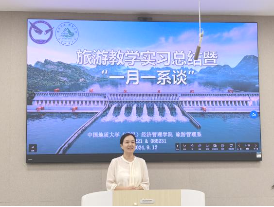 2024年9月12日下午,秭归-巴东旅游教学实习总结暨“一月一系谈”活动在taptap点点官方网站一楼109举办。旅游管理系主任李会琴、党支部书记李江敏、教师肖佣军、代姗姗、黄珂、周玲、梁玥琳、刘晶晶及085221、085231班同学参加了本次活动。活动以“新起点、新征程”为主题,总结、表彰秭归-巴东旅游教学实习情况,并为2022级、2023级学生提供新学期学习规划指导,活动由旅游管理系副主任黄珂主持。