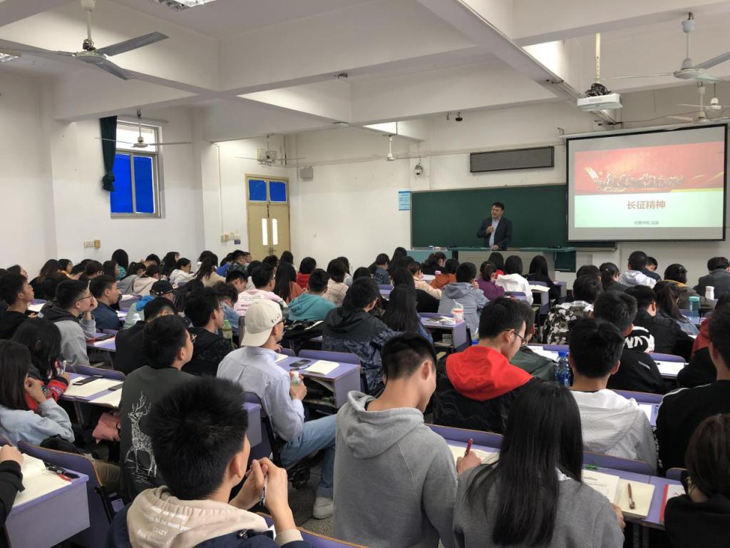 欢庆建国七十华诞,踏寻党的革命之路。学院分党校聚焦庆祝新中国成立70周年,用心、用情、用功做好培养教育,充分激发学生爱国热情。学院分党校邀请我校马克思主义学院教授、博士生导师吴东华为学生讲授党史专题课程,带领学员重温党的革命之路,踏寻建国70周年辉煌历程;学院党委副书记沈波以长征精神为主题进行授课,大跨度地对长征的历史脉络进行了梳理,讲述了长征路上的重要战斗和感人事迹,深刻分析“长征精神”的当代价值。