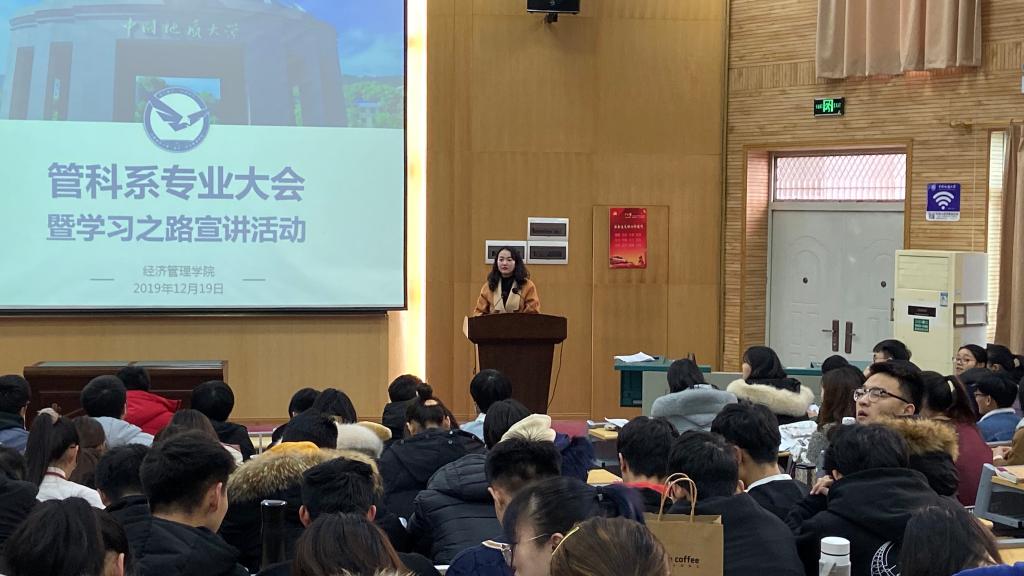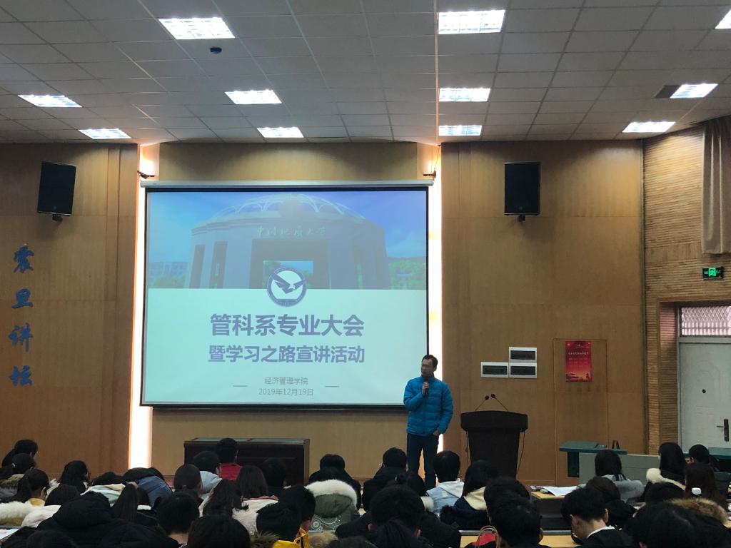 2019年12月19日,taptap点点官方网站管理科学与工程系本科生专业大会暨学习之路宣讲活动在教三楼109召开,管科系副主任翁克瑞老师、管科系辅导员徐媛老师出席大会,17-19级管科系全体学生参会,会议由徐老师主持。