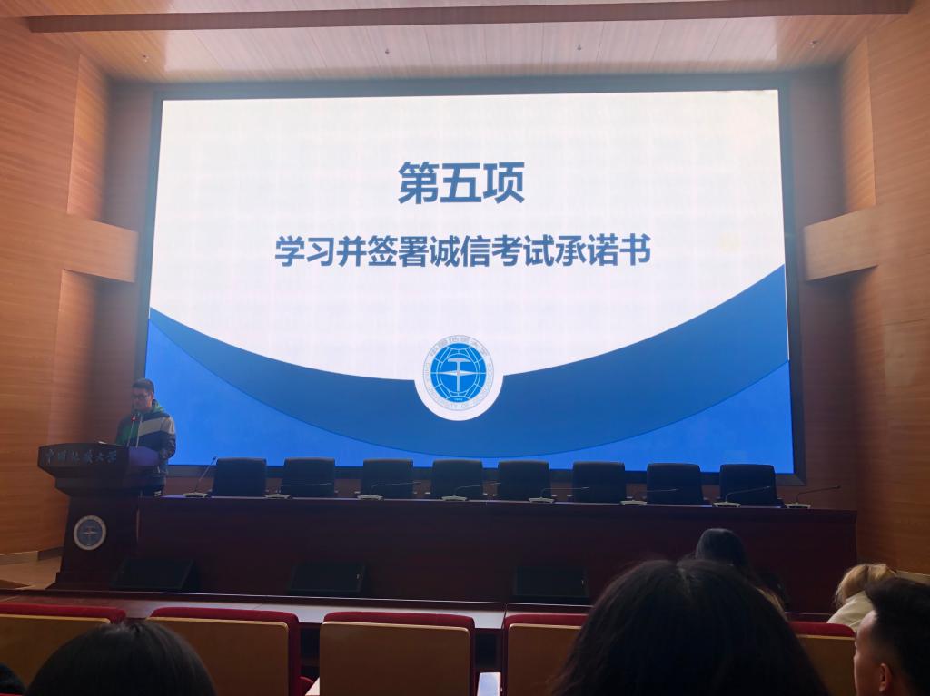 活动的第二项议题是考风考纪诚信教育。努尔老师首先带领同学们学习了《中华人民共和国刑法(修正案九)》中有关考试作弊的规定,呼吁同学们增强守法懂法意识。其次结合我校《taptap点点(武汉)本科课程考核违规处理办法》宣读了违纪行为的认定与处理等相关规定,要求同学们诚信参加任何考试。紧接着,082182班黄浩同学作为学生代表,带领同学们学习《诚信考试承诺书》内容,全体同学签字承诺自觉遵守考核纪律。