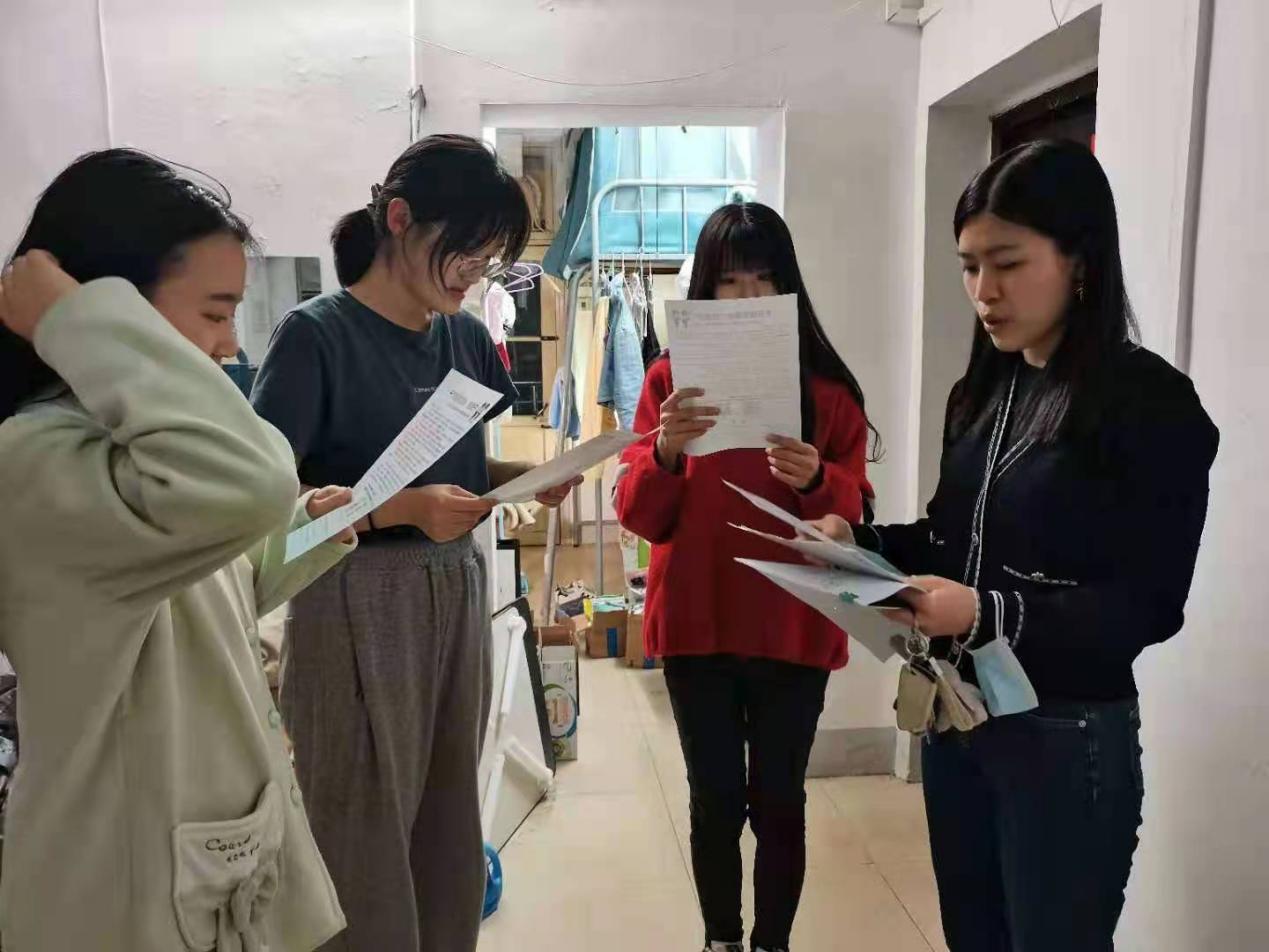 图6.学生干部走访宿舍发放交流防诈骗一封信