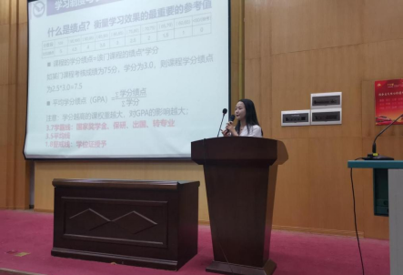 徐媛老师从学习制度与学业规划两方面,对毕业的条件、培养方案、课程学分、如何获得课程学分以及绩点进行了详细的解读。同时,强调了挂科给自身带来的弊端,告诫大家努力学习,在不挂科的基础上争取向优异的成绩冲刺。随后,徐老师向大家介绍了专业分流、保研、考研以及拔高类的学业相关项目。最后,她希望全体新生能够保持健康的学习心理,坚持良好的学习习惯,做到高度自律。