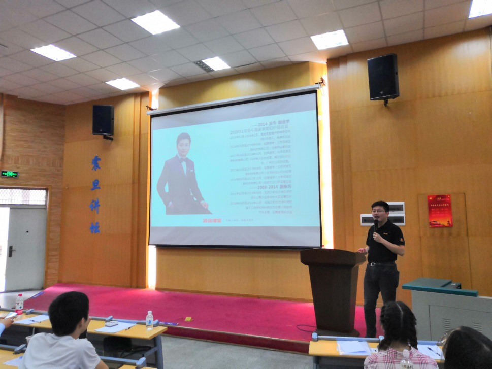 校友曹维佳以《移动互联网时代职业选择的智慧》为题,从自己毕业十年来的工作经历讲起,以自己为例,为同学们求职就业提出了真诚的建议。重点强调了取势、明道、优术在就业中的重要作用,为同学们分析了面临就业选择时需要做的准备。曹维佳校友介绍了“跟谁学”线上教育平台与“高途课堂”项目,分析了线上教育的前景和公司的发展现状,现场收取简历,能给有意愿的同学一个加入高途课堂的机会。