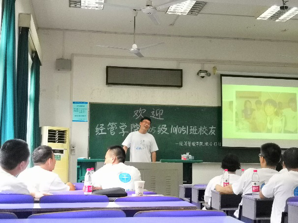 当天下午,经管地子归社团引导101051班全体校友参观校园,在学校大门、弘毅堂、操场、隧道、教室等留有青春印记的熟悉场景合影留念,并在教三楼203教室开展“十年再续手足深情 今朝再创卓越佳绩”主题班会。校友们齐聚一堂,观看大学时光回忆录,分享他们毕业后的工作状况、家庭生活和内心感触,字里行间里表达着对母校的思念,热泪盈眶怀念曾经的师生情、同学情。