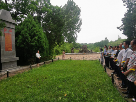 参观学习的第一站是鄂豫皖苏区首府烈士陵园,这里安葬着1800余位革命烈士、老红军和红军将领。院党委书记杨昌锐、院长杨树旺向革命烈士纪念碑敬献花篮,全体成员鞠躬致敬。穿过烈士纪念堂,感受着鄂豫皖苏区13万革命烈士的丰功伟绩,全体党员神情肃穆。在英烈广场,杨昌锐带领大家重温入党誓词。