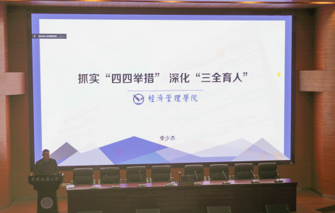 李少杰副书记作了题为《抓实“四四举措” 深化“三全育人”》的学生工作报告。李书记从全程贯通、空间联通、队伍互通、内容打通、评价融通阐释了“五通”原则,提出把基本工作思路落实在责任、治理、协同、改革中,把学生工作理念实现在理念体系化、工作项目化、活动品牌化中,并进一步总结了2022年经管学院的学生工作的重点举措在于:以“四维课堂”为牵引,不断深化党建思政实效、以“四类空间”为重点,不断拓展教育场域格局、以“四支队伍”为骨干,不断凝聚协同育人合力、以“四项制度”为抓手,不断完善管理服务体系。随后,李书记对《taptap点点官方网站班主任工作考核办法》进行了解读。
